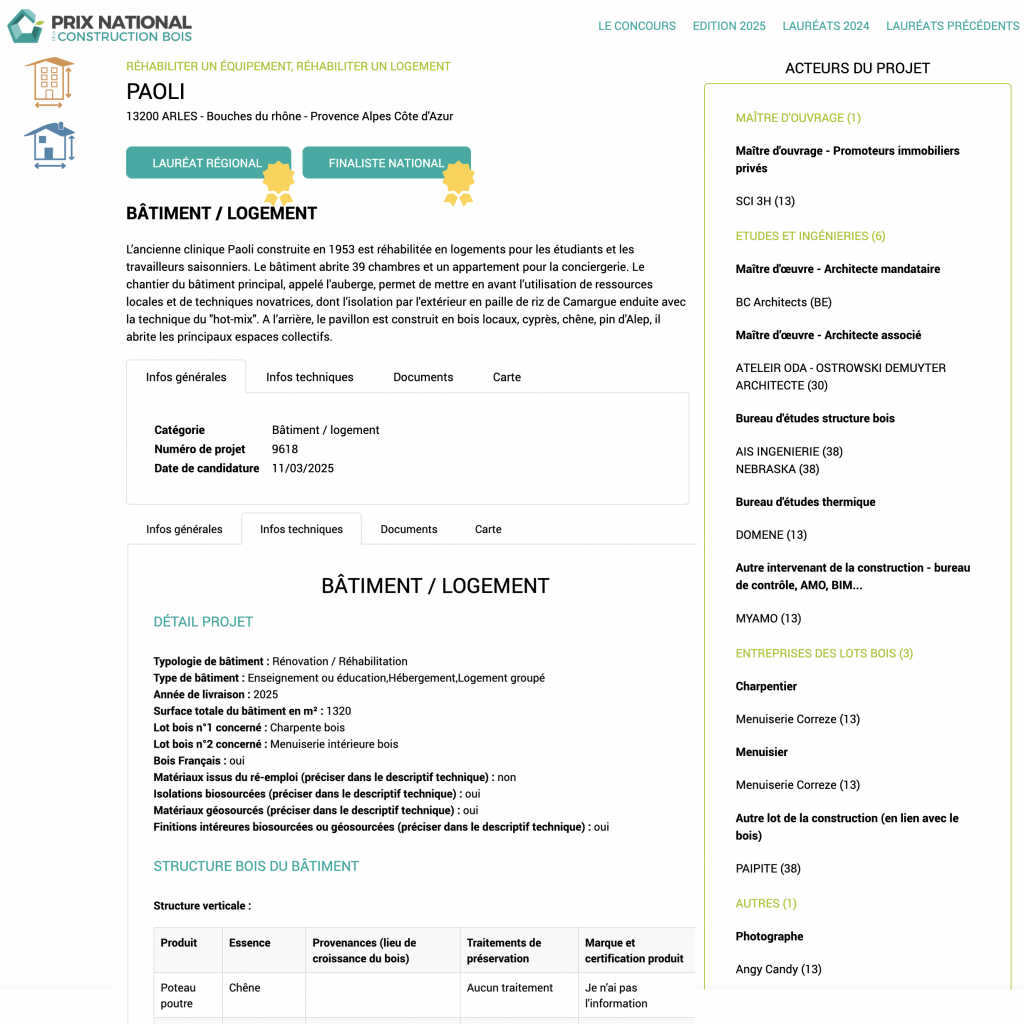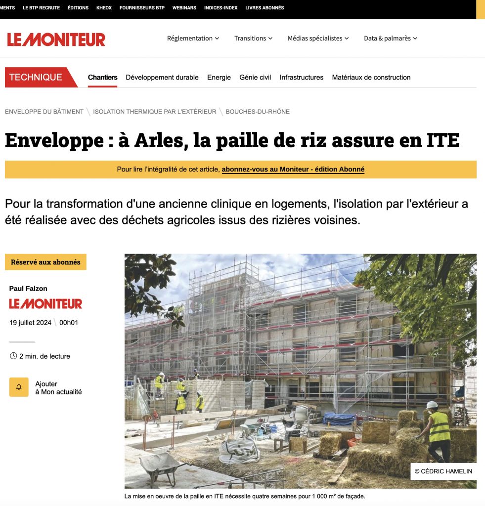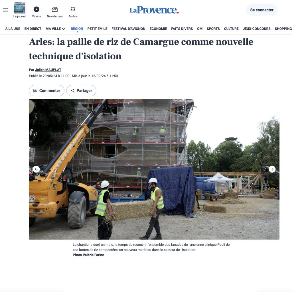 Presse ITE Paille de riz / Projet Paoli à Arles / 2024 / Le moniteur lien ici ITE Paille de riz / Projet Paoli à Arles / 2024 / La provence lien ici Fibois prix régional et Finaliste national lien ici